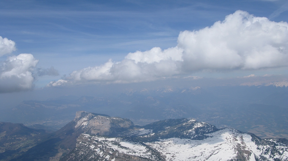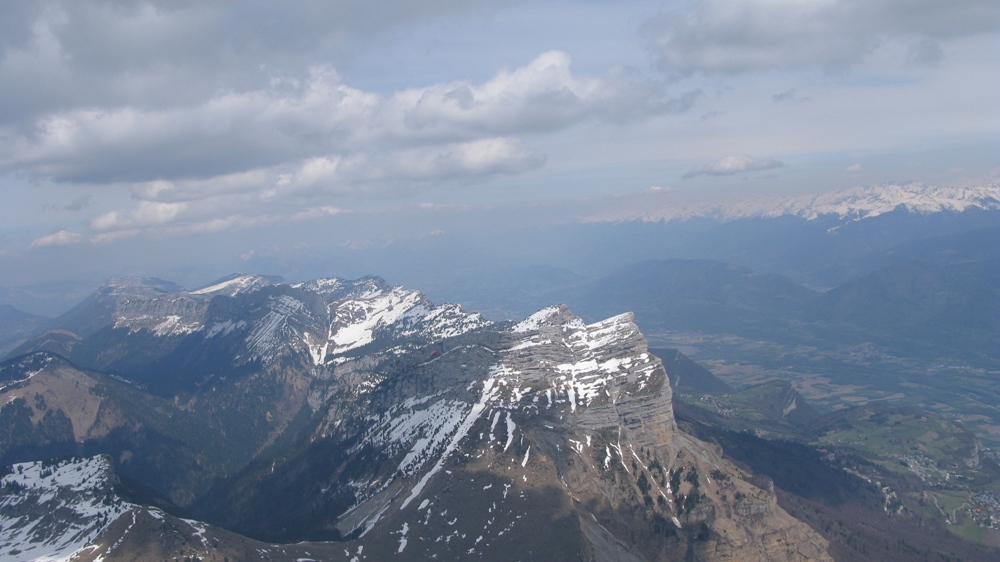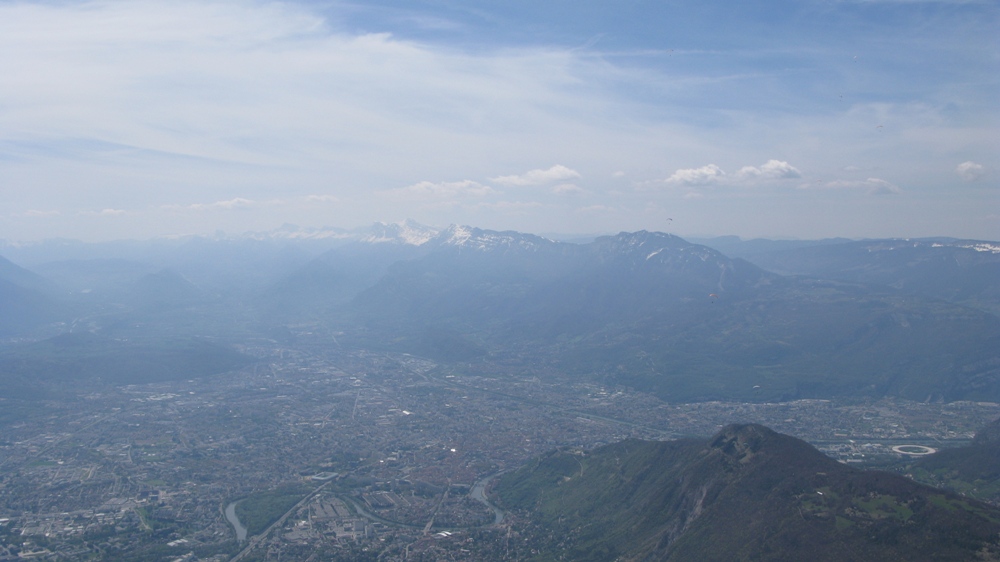 Début de vol classique, avec des thermiques faciles le long des falaises. Là où ça devient moins classique, c’est qu’après la traversée du Manival, le premier thermique du Saint Eynard me monte directement à 2600m. Et ce, comme le fait remarquer Jac, sans violence. Entre +2 et +4 tout le long.
