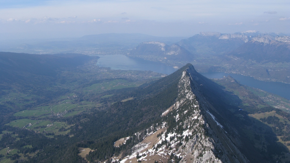 Au Roc des Boeufs, mon idée de départ est de traverser le Lac d’Annecy vers de Col de la Forclaz. Mais deux voiles plus basses que moi partent directement vers Montmin. Ah, si les locaux y croient, je vais tenter aussi. Je les suis.